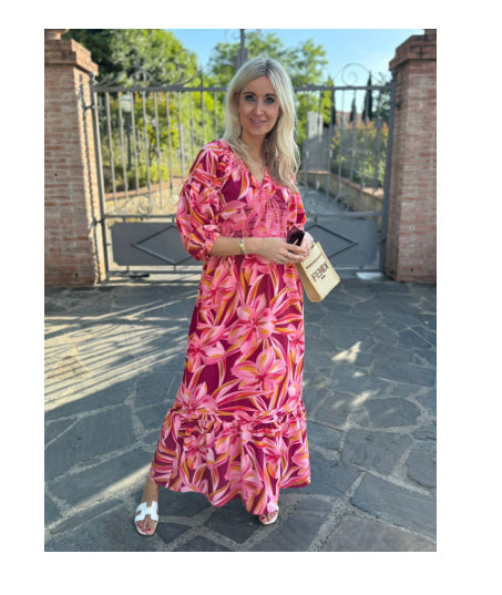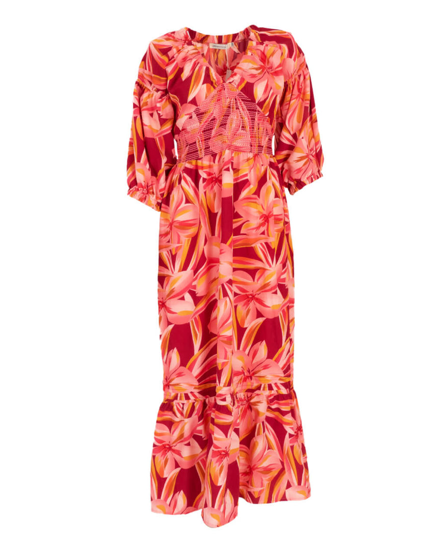 Maxi jurk met gesmokt detail aan de voorzijde van het merk Azzurro